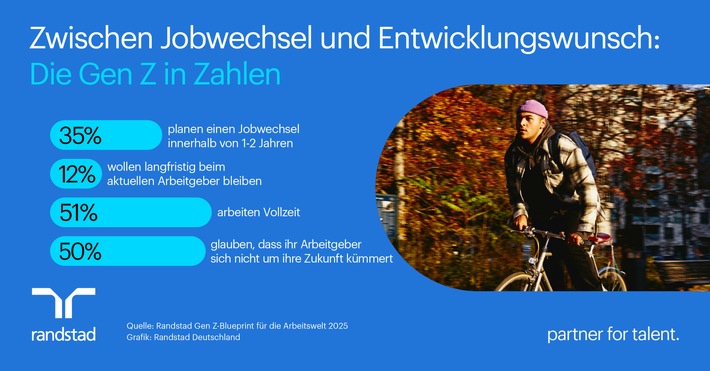 Die Generation Z will leisten und vorankommen – doch sie stößt häufig auf Hürden. Seit Januar 2024 sind Einstiegspositionen auf globaler Ebene um ganze 29 Prozentpunkte zurückgegangen, zeigt die neue Randstad Studie Der Gen Z-Blueprint für die Arbeitswelt (https://u7061146.ct.sendgrid.net/ls/click?upn=u001.gqh-2BaxUzlo7XKIuSly0rC6NusjZ-2FgQLkgtKSZXZ8LmZ2rNK-2F8MKsUlwavVtgQ8F92nJcejcDNF5navhGKzQ0s-2BiQLg0ieAJolnkd-2Brymw22h-2ByIlZmG1ydBynwK3OwQCf9Rd3x5mMm7q3EEfrGWGtcNTGU4xD2RouQ-2Fg41N4fQwjSPY3IzBpNQxtC8UmXsSiACHME6gku2BgjICpurebIFoNBCbFQJu9scEfJ4B7vzNZlX7sKwWNFGDF12Y3JYFsawTUKcjBgiOUmyXULkbaEerGpaeTjL8Qf9meabMt10o-3DDecd_17jbu2-2BbG9RNyAX0buchWG-2BhzkWBaHBrRyg2mhV-2FHvnt6K04cJ-2BPfX65r3z47ZETlThwf7rTCckqkywqQJEDVePFfAuDGYDv9jNwGrC6wS2XqRtfeKrfjosax7D2FMzpAP2MuDKqZF2XFIPQypNLZ6IMol-2BQ2I3IdbYPIl3In5MoCUqfna1ejmLSw627pIYkUA4Tkzd16WVTUoBsScsOU2BsG8XdYi1Kfu4zEpxN0kF1U-2FLJ3b8jKJAKPJhwyH-2FCa7JRHepM-2BSEyeAXrMJz-2BsZMK-2FQnQdmUglf2jUeZcg3lStLGWpjrk8gvSul1WiVKcjif2gJLiHZeGOHecC8HzqQ-3D-3D). Ein weiteres Problem: Junge Beschäftigte sind karriereorientiert, sehen aber in vielen Unternehmen kaum Entwicklungsmöglichkeiten. Mehr als ein Drittel (35 %) plant deshalb einen Jobwechsel in den kommenden ein bis zwei Jahren. Arbeitgeber riskieren, eine ambitionierte Nachwuchsgeneration zu verlieren, wenn sie die Generation nicht dort abholen, wo sie steht.